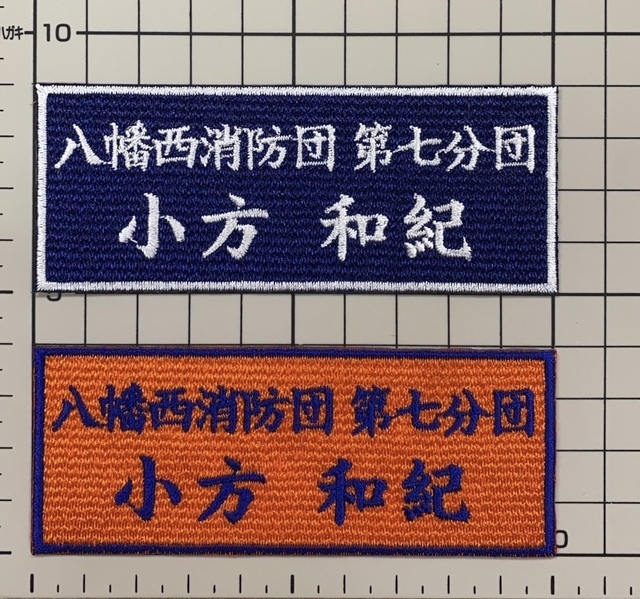 社名や団体名のネーム刺繍ワッペン(楷書体使用)