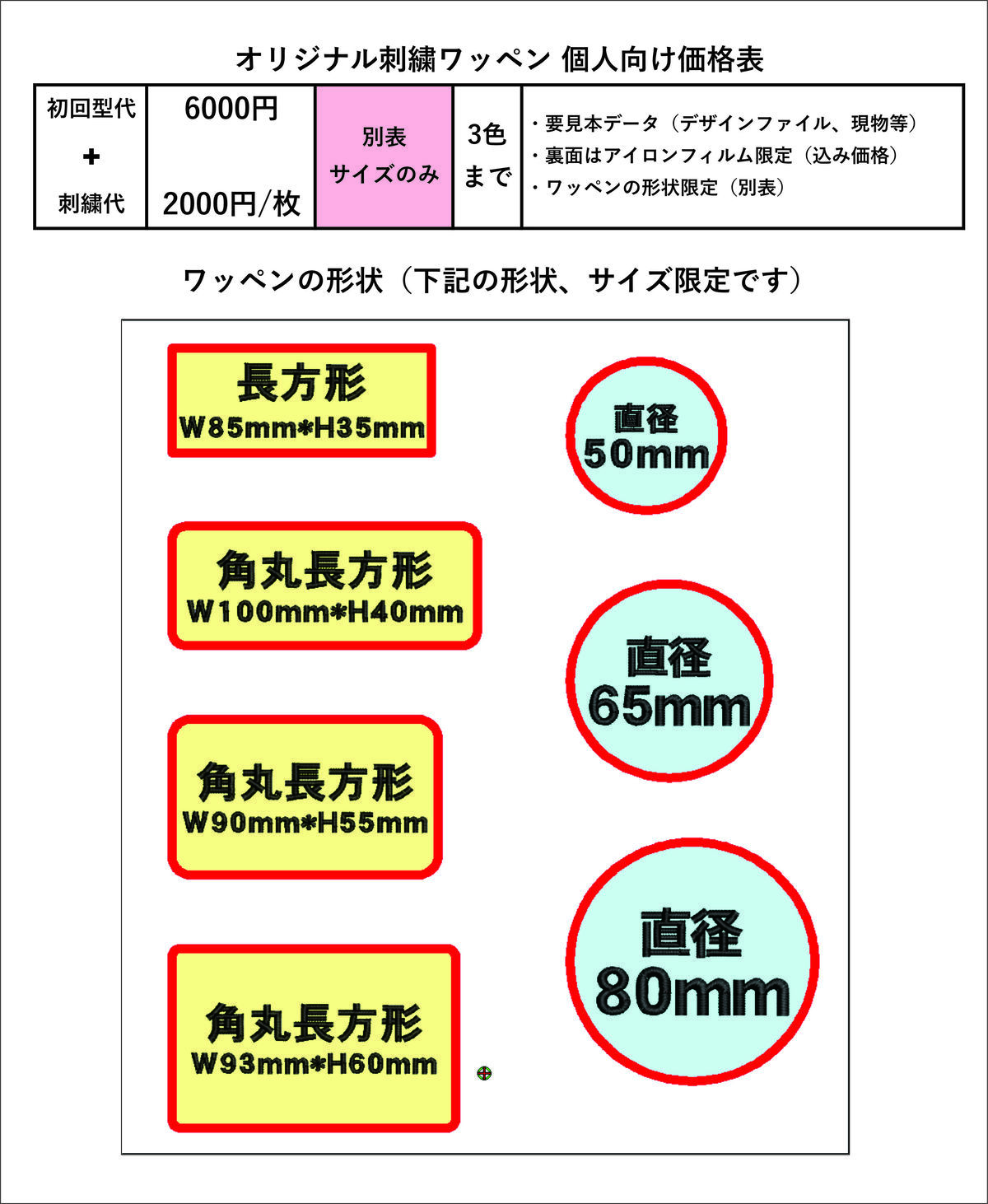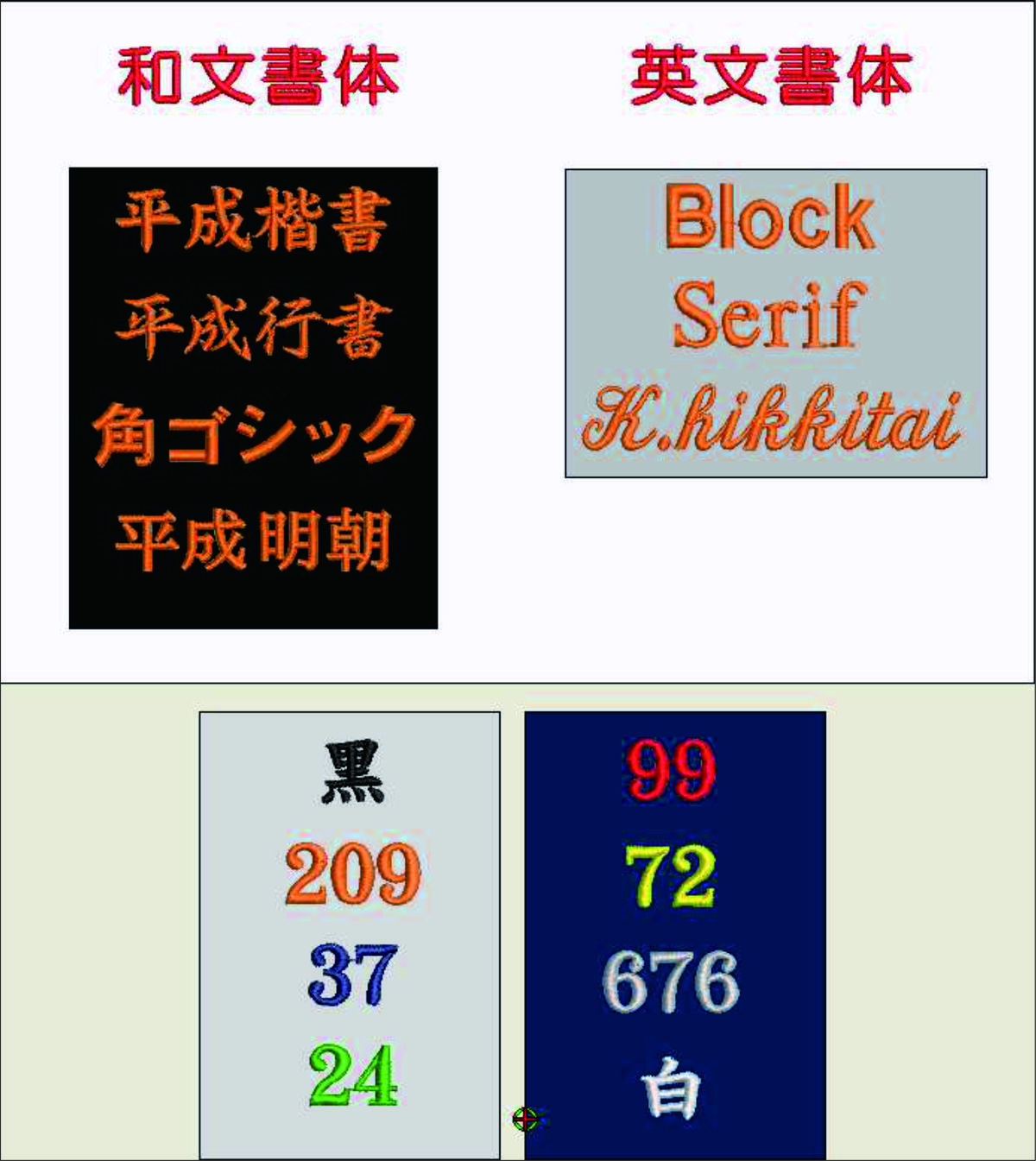 文字の書体、色に関しましては、上記の範囲内のみ受け付け致します。