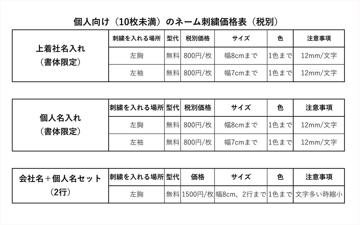 愛知シシュウでは、基本的に法人様量産のみ受け付けてまいりましたが、この度、少量や個人様向け等の加工も、条件付きで開始させて頂きました。