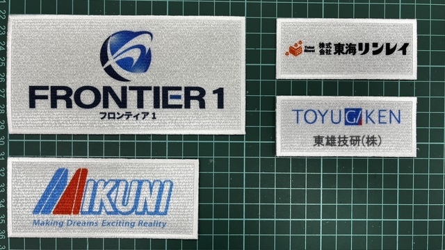 こちらはサテンというベース生地を使った企業ロゴのワッペンです。キラリと光るワッペンではありますが、刺繍の模様等は入っていませんので、こちらも企業向けワッペンとしてはとても人気があります。